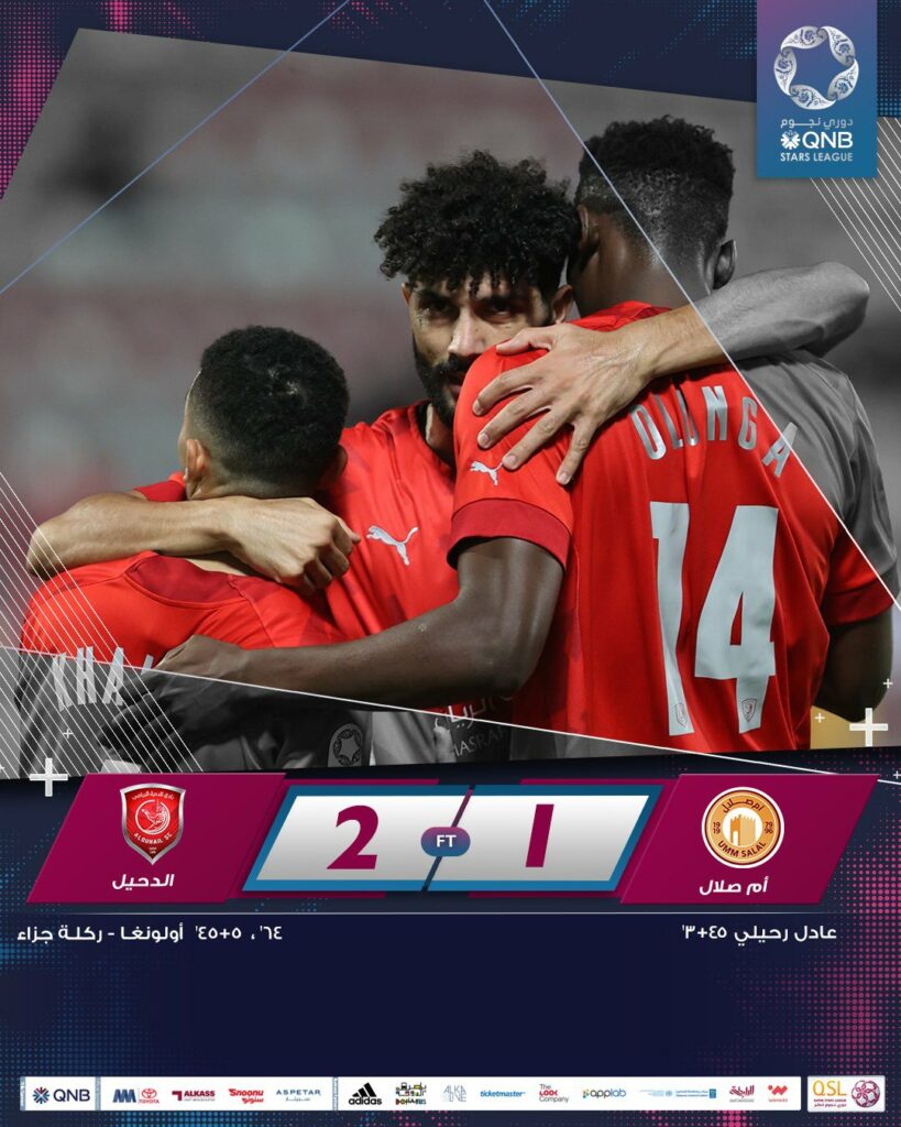 الدوحة : رؤية سبورت– حسم فريق الدحيل لقاءه مع أم صلال بهدفين مقابل هدف، ضمن مباريات الأسبوع العشرين من دوري نجوم QNB للموسم 2022- 2023، والتي أقيمت اليوم السبت، على استاد عبدالله بن خليفة بنادي الدحيل.