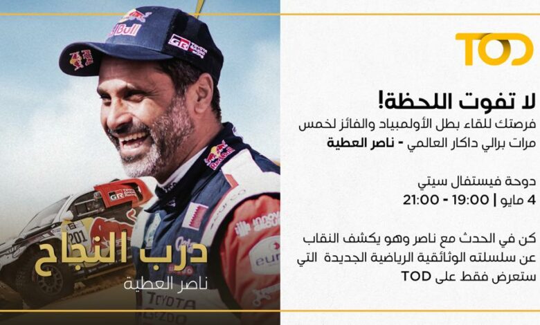 ستكون لدى عشاق الرياضة في جميع أنحاء قطر الفرصة للقاء ناصر العطية، سائق الراليات والرامي الأولمبي القطري – خلال فعالية خاصة في دوحة فستيفال سيتي باستضافة TOD، منصة الرياضة والترفيه الرائدة في منطقة الشرق الأوسط وشمال إفريقيا.