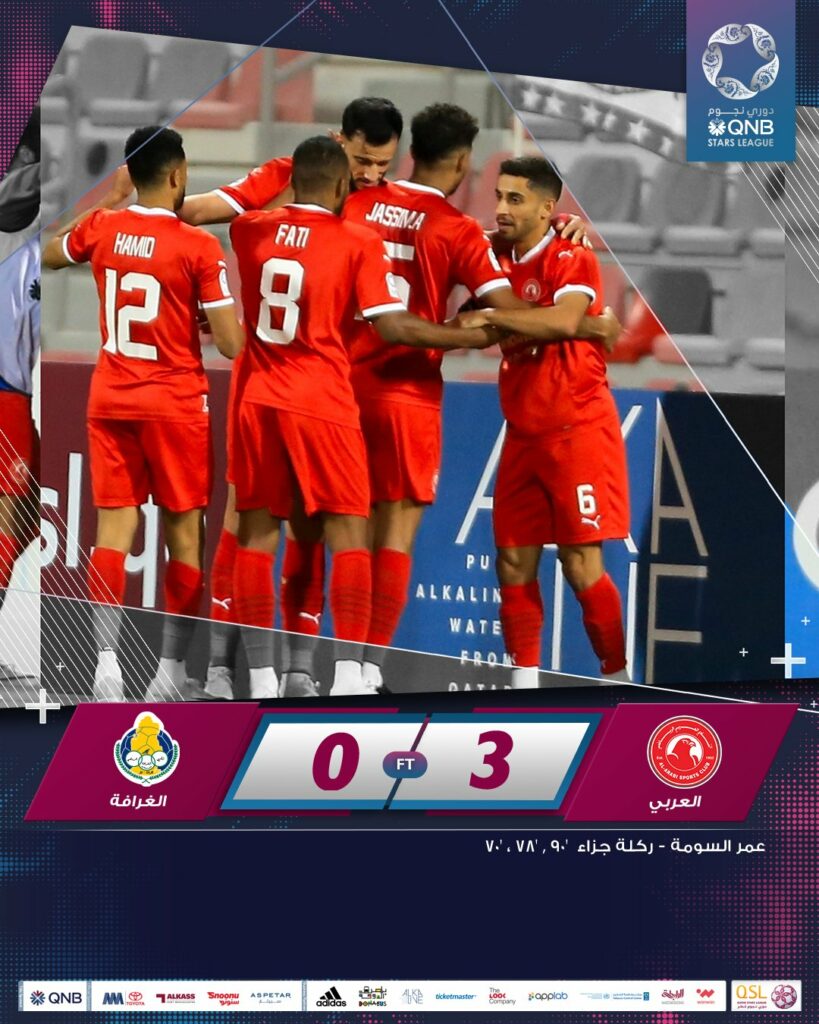 سجل أهداف العربي عمر السومة (هاتريك) في الدقائق 70 و78 من ركلة جزاء، و90 .
