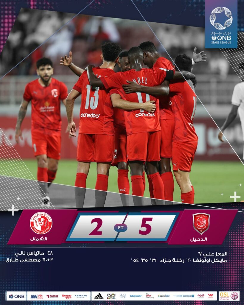 ويدين الدحيل بفوزه إلى نجمه الكيني مايكل أولونغا الذي سجل رباعية (سوبر هاتريك ) في الدقائق ( 21 و 32 و 35 و 52) متوجا هدافا للدوري برصيد 22 هدفا، فيما سجل المعز هدفا ( 8)، بينما سجل للشمال الأرجنيتني مايتاس ناني (48) ومصطفى طارق في الدقيقة 90 +4.