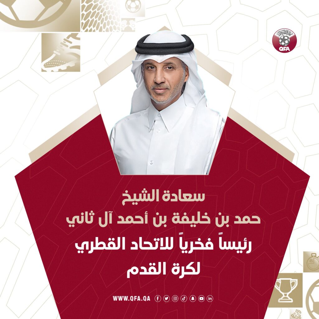 الجدير بالذكر أن سعادة الشيخ حمد بن خليفة بن أحمد آل ثاني الرئيس السابق لاتحاد كرة القدم كان قد تولى منصب الرئاسة منذ العام 2005، بعد أن مارس كرة القدم لاعبا بالمنتخب القطري للشباب، ولعب لناديي الريان والتضامن، وتولى منصب مدير التخطيط باللجنة الأولمبية القطرية، وعضوية الاتحاد القطري لكرة القدم، ثم نائبا لرئيس الاتحاد القطري، ثم رئاسة الاتحاد، فضلا عن رئاسته الحالية للاتحاد الخليجي لكرة القدم.