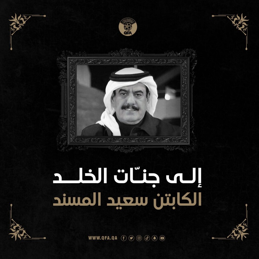 الدوحة : رؤيةسبورت- إنتقل إلى رحمة الله مساء اليوم السبت المدرب الوطني القطري القدير سعيد المسند المستشار الفني للمنتخبات الوطنية بعد مسيرة حافلة بالإنجازات في تاريخ الرياضة القطرية، ونعى الإتحاد القطري لكرة القدم والأسرة الرياضية في قطر الكابتن سعيد المسند الذي قدم العطاء الكبير للكرة القطرية في كل المواقع التي شغلها، إنا لله وإنا إليه راجعون ونسأل الله سبحانه وتعالى له الرحمة والمغفرة والقبول الحسن.