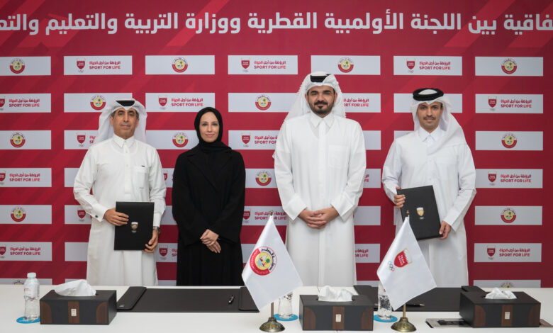 الدوحة /قنا/ وقعت اللجنة الأولمبية القطرية اليوم، اتفاقية تعاون مع وزارة التربية والتعليم والتعليم العالي في مجال الأنشطة البدنية والرياضية وربط التعليم بالرياضة، وذلك بحضور سعادة الشيخ جوعان بن حمد آل ثاني رئيس اللجنة الأولمبية القطرية، وسعادة السيدة بثينة بنت علي الجبر النعيمي وزير التربية والتعليم والتعليم العالي.