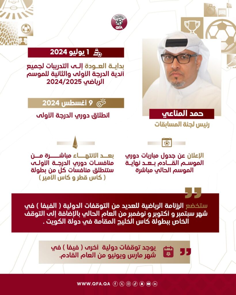 الإتحاد القطري لكرة القدم يعلن رزنامة مسابقات الموسم الجديد 2024-2025