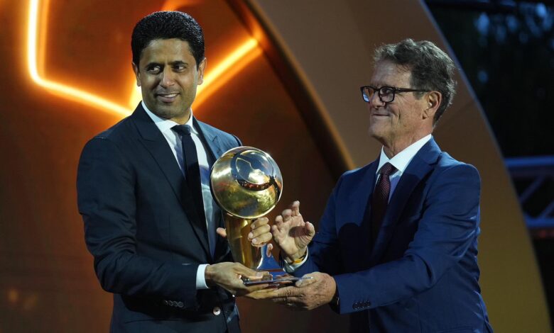 كوستا سميرالدا ـ سردينيا: فاز سعادة السيد ناصر الخليفي، رئيس رابطة الأندية الأوروبية ورئيس نادي باريس سان جيرمان، بجائزة الريادة في كرة القدم خلال حفل توزيع جوائز كافد غلوب سوكر الأوروبية بنسخته الأولى الذي أقيم بمنطقة كوستا سميرالدا في سردينيا الإيطالية.