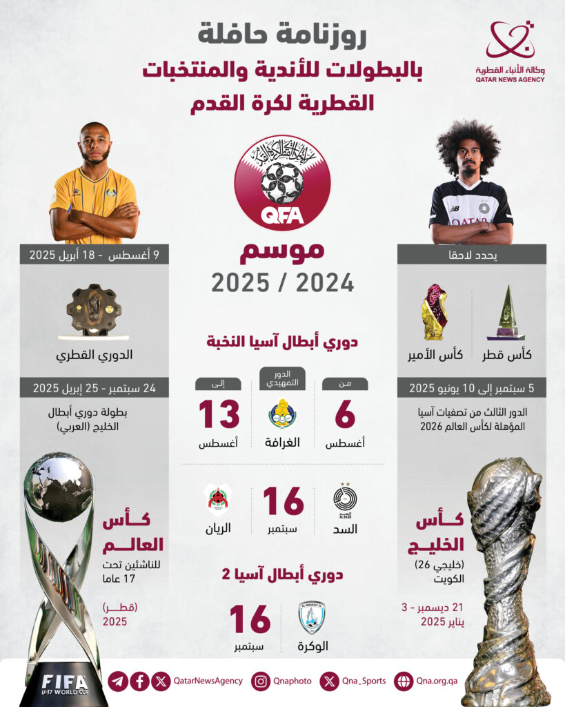 الدوحة: تتأهب الأندية والمنتخبات القطرية لكرة القدم لمنافسات متعددة وروزنامة حافلة بالبطولات في موسم 2024 -2025، الذي يشهد جملة من المشاركات المحلية والاستحقاقات الخارجية.