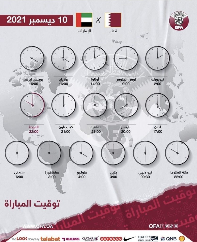 توقيت مبارة قطر والامارات في مختلف عواصم العالم