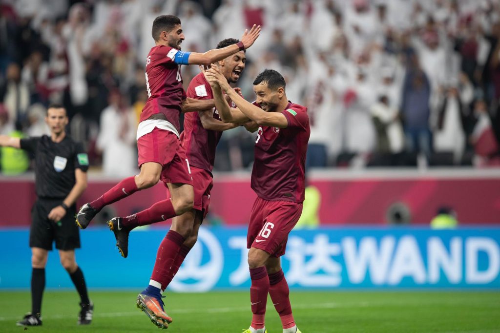 حقق منتخب قطر فوزا عريضا وكاسحا على المنتخب الإماراتي 5/ 0 في المباراة التي جمعت الفريقين على أرضية ملعب أستاد البيت ضمن مباريات الدور ربع النهائي لبطولة كأس العرب العاشرة مساء الجمعة، وحسم منتخب قطر المباراة منذ شوطها الأول بتسجيله للاهداف الخمسة التي جاءت عن طريق اللاعب الإماراتي علي سالمين في مرماه بالخطأ في الدقيقة 6 ، وأضاف المعز على الهدف الثاني في الدقيقة 28 ، من ضربة جزاء وسجل الهدف الثالث خوخي بوعلام في الدقيقة 36 من ضربة جزاء ، وأضاف عبد العزيز حاتم الهدف الرابع في الدقيقة 44 من تسديدة رائعة في الزاوية اليسرى لمرمى الحارس الإماراتي علي خصيف ، لياتي الدور على الهداف المعز علي ليضيف الهدف الخامس في الدقيقة الثالثة من الوقت المحتسب بدلا من الضائع 45+3 ، وجاء الشوط الثاني دون أن يسجل منتخب قطر هدفا اضافيا مكتفيا بالخماسية التاريخية في مرمى الإماراتي الذي سعى لإيقاف سيل الهدف العنابية، وقنع بالهزيمة بالخمسة، وينتظر منتخب قطر الفائز من مباراة المغرب والجزائر التي تقام السبت ضمن مباريات الدور ربع النهائي