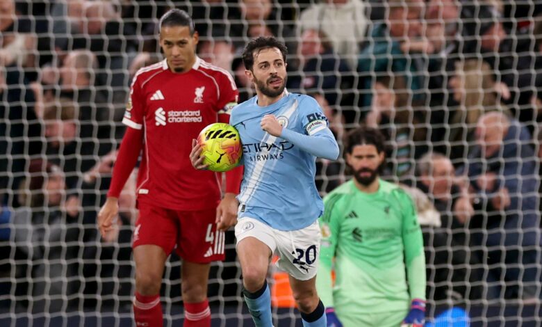 مدرب الريدز سلوت يواصل إهدار النقاط واضاع فوزا كان في المتناول بينما جوارديولا تنفس الصعداء بقبلة الحياة التي أهداها له هالاند وبيرنارد سيلفا.. بعد ان كانت المباراة تمضي لصالح ليفربول