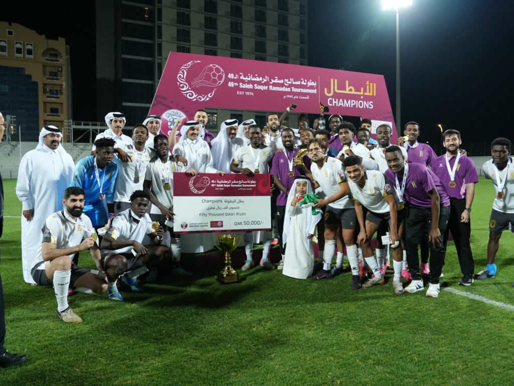 تُوّج فريق نادي الرفاع بطلاً للنسخة التاسعة والأربعين من بطولة صالح صقر الرمضانية، ليُضاف إلى سجل البطولة العريق، وذلك عقب فوزه المثير على نادي الدوحة بركلات الجزاء الترجيحية بنتيجة 7-6، بعد انتهاء الوقت الأصلي للمباراة النهائية بالتعادل السلبي، في اللقاء الذي احتضنه استاد الدوحة وسط أجواء مميزة عكست قيمة الحدث ومكانته.وعقب انتهاء المباراة قام هاني طالب بلان الرئيس التنفيذي لمؤسسة دوري نجوم قطر برفقة صالح صقر رئيس اللجنة المنظمة بتتويج الفائزين