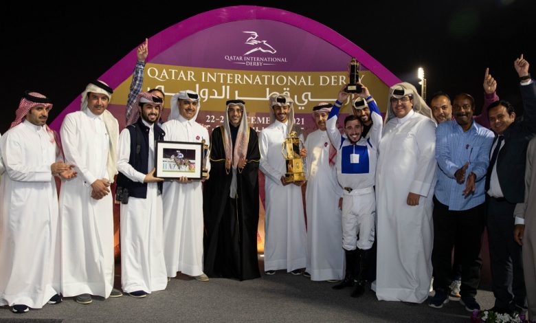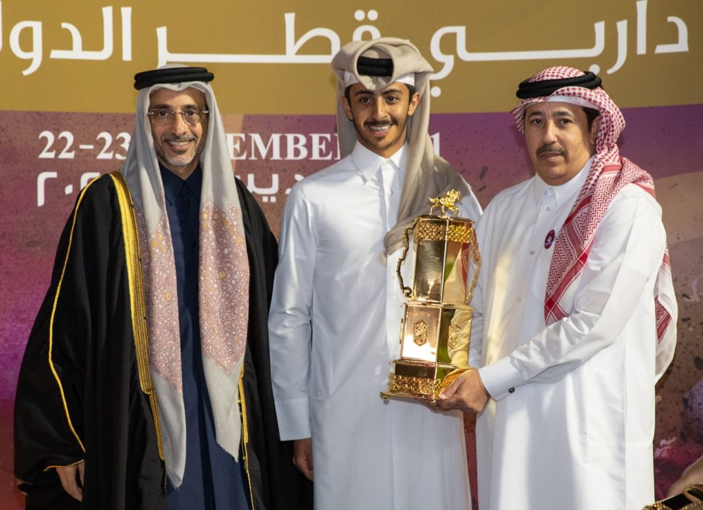 توج سعادة صلاح بن غانم العلي وزير الرياضة والشباب مساء اليوم الفائزين بداربي قطر الوطني للخيل من الفئة الأولى، والفائز به خليفة بن شعيل الكواري ، مالك الجواد “صقر ” بطل الشوط الختامي لسباق داربي قطر الدولي على مضمار الريان.