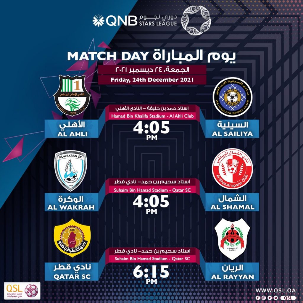 ويلتقي في ذات التوقيت من خلال المباراة الثانية اليوم فريقا الوكرة والشمال عند الساعة الرابعة وخمس دقائق على ملعب أستاد سحيم بن حمد بنادي قطر