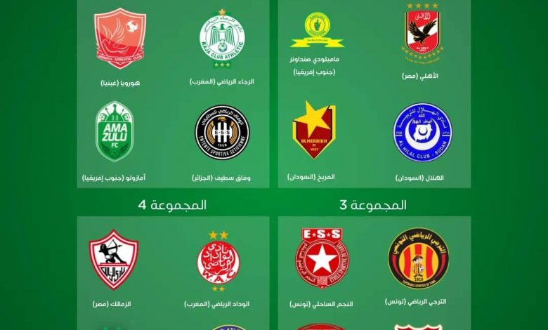 المجموعة الأولى: الأهلي المصري – صن داونز الجنوب إفريقي – الهلال السوداني – المريخ السوداني