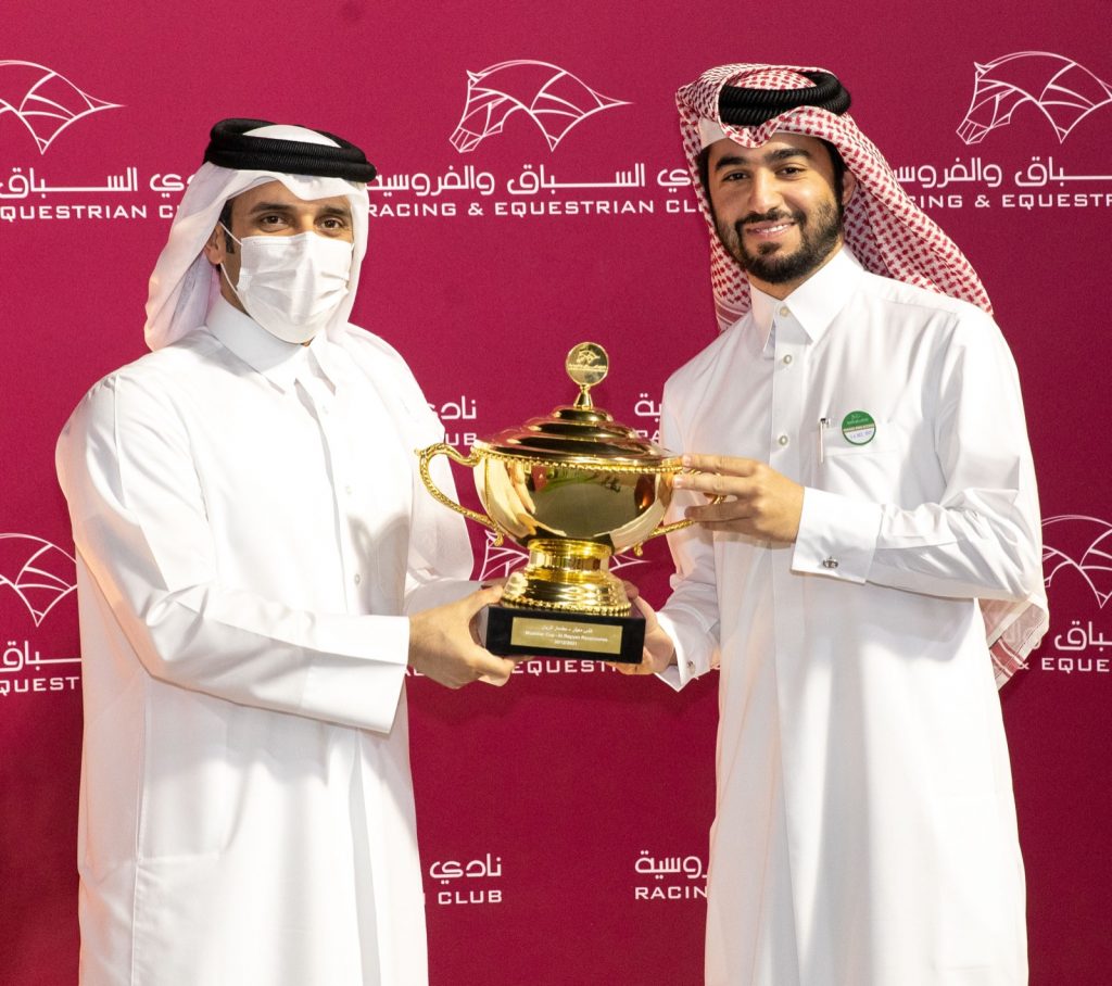 توج بدر محمد الدرويش القائم بمهام الرئيس التنفيذي لنادي السباق والفروسية مساء اليوم الخميس الفائزين بكأس معيذر، والذي فاز به الجواد صياد ملك مربط الغزالي، واعتلى من خلال الشوط الرئيسي منصة التتويج.