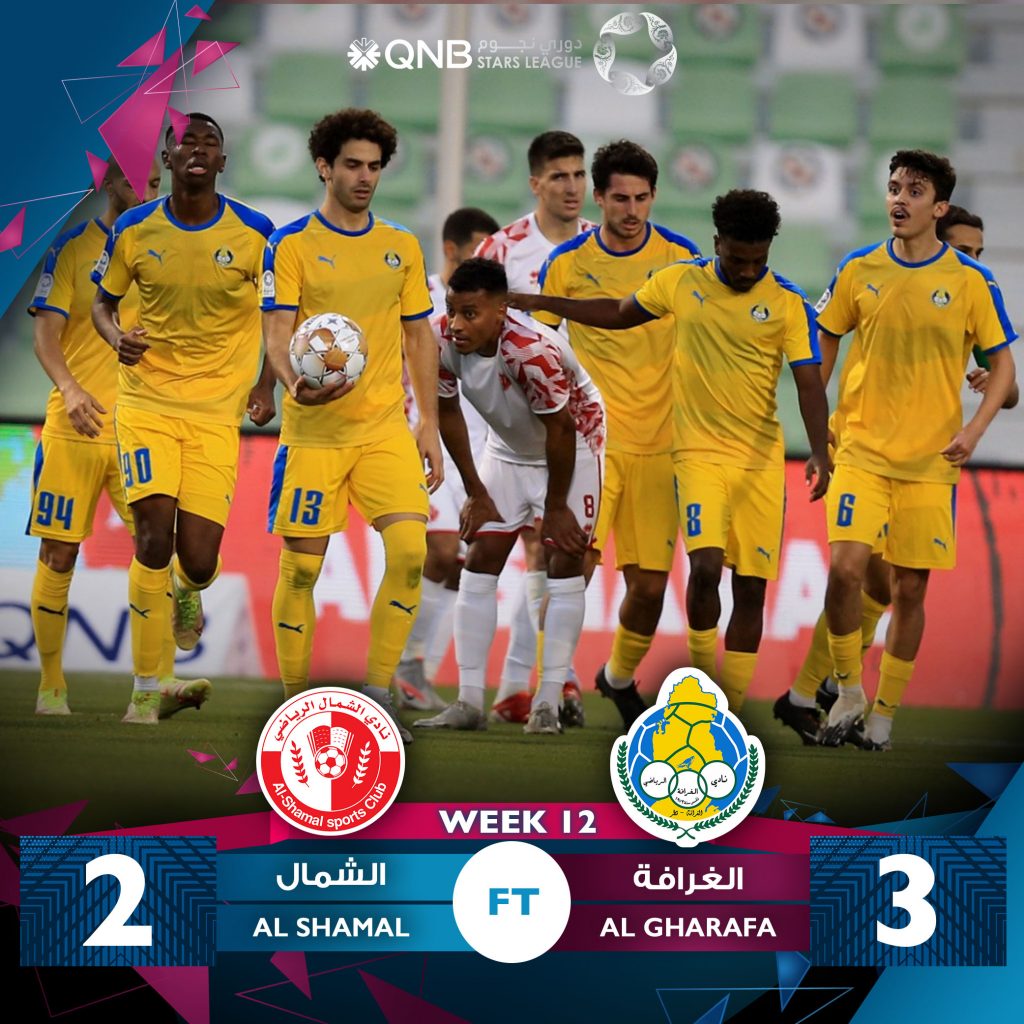 حقق فريق الغرافة فوزا مهما اليوم على حساب فريق الشمال 2/3 من خلال المباراة التي جمعت الفريقين ضمن مباريات الأسبوع الثاني عشر لدوري نجوم قطر ، وعقب انتهاء المباراة ثمن ستراماتشوني مدرب الغرافة بأداء الفهود مشيرا إلى أن اللاعبين تمكنوا من تحقيق الفوز رغم الغيابات الكبيرة في صفوف الفريق، وبالنتيجة يرفع الغرافة رصيده إلى 22 نقطة في المركز الثالث مؤقتا بينما تجمد رصيد الشمال عند 9 نقاط في المركز التاسع