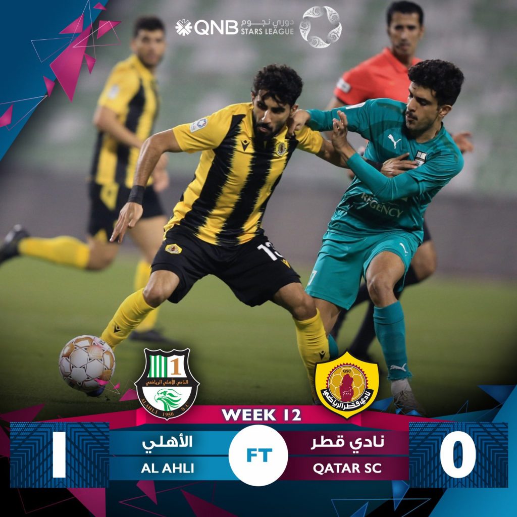 ورفع الأهلي رصيده الى 12 نقطة، وهو نفس رصيد نادي قطر.
