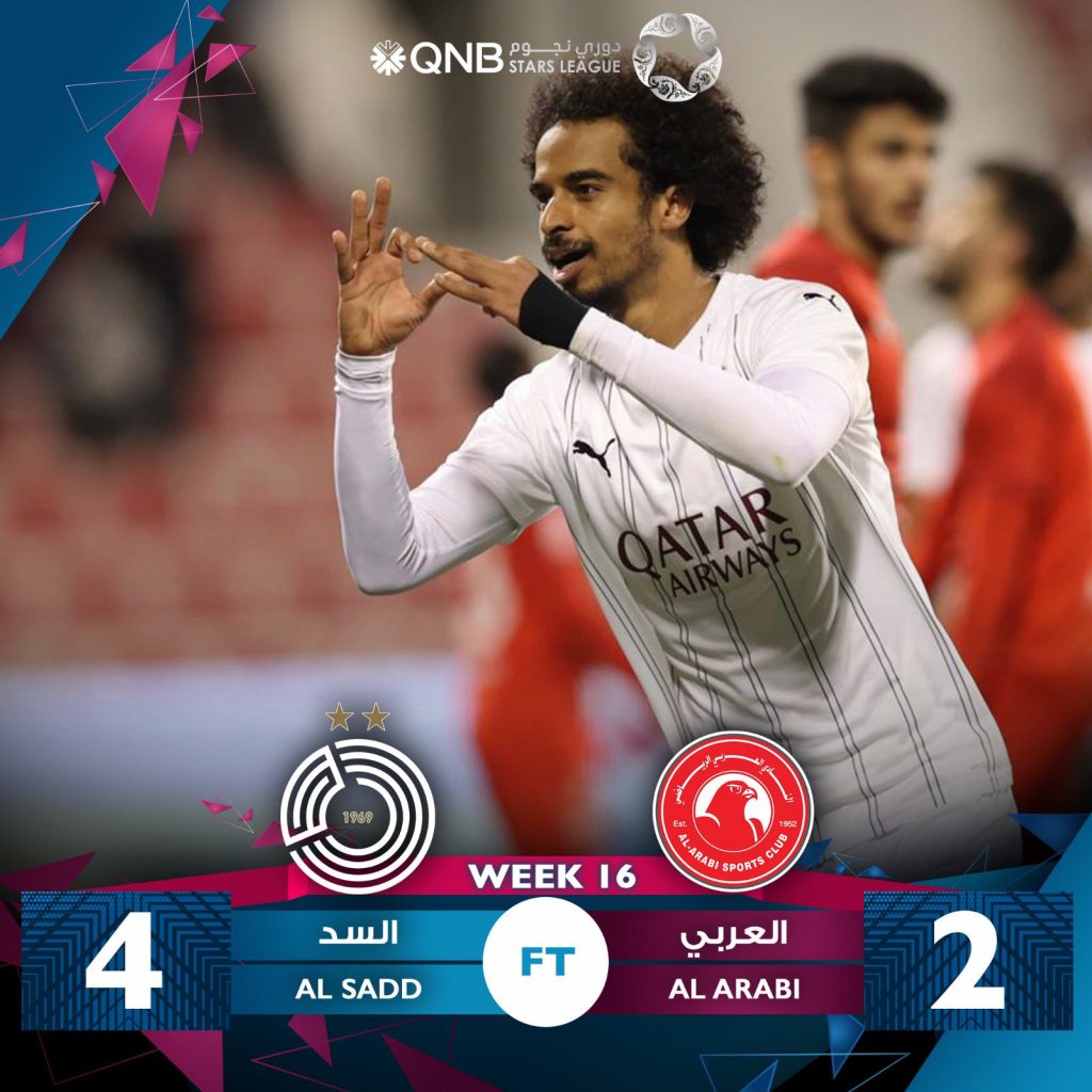 رؤية سبورت – واصل السد انتصاراته ومشواره القوي في دوري نجوم QNB للموسم 2021- 2022، بتحقيق الفوز على العربي بأربعة أهداف مقابل هدفين، ضمن مباريات الأسبوع السادس عشر، والتي أقيمت اليوم السبت، على استاد حمد الكبير بالنادي العربي.