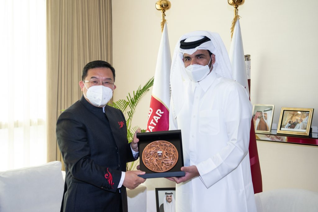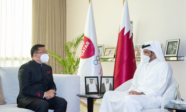 استقبل سعادة الشيخ جوعان بن حمد آل ثاني رئيس اللجنة الأولمبية القطرية في مكتبه، صباح اليوم، سعادة السيد/ تشو جيان سفير جمهورية الصين الشعبية لدى الدولة.