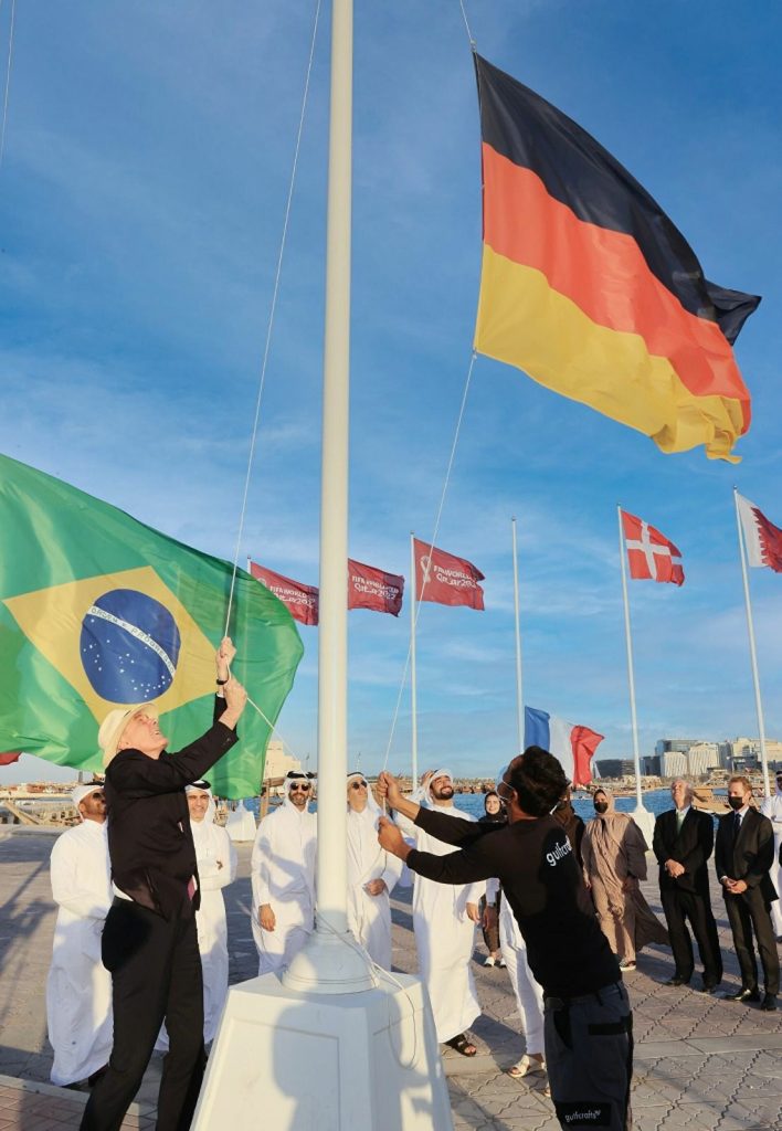ومن جانبه قال السيد حسن الذوادي في تصريح خاص لوكالة الانباء القطرية / قنا/ :” نواصل تنظيم مهرجان رفع الأعلام ترحيبا بالدول المتأهلة لكأس العالم FIFA قطر 2022 مع وصول العدد لـ 16 منتخبا ، وهي مبادرة من اللجنة العليا للمشاريع والإرث واللجنة المنظمة للبطولة في دولة قطر للترحيب ليس فقط بالمنتخبات المتأهلة بل بشكل أهم بجماهير هذه المنتخبات ليتواجدوا هنا في العرس الكروي بعد أقل من سنة من الآن في المونديال، وأن هذه المبادرة ستقوم بها اللجنة العليا للمشاريع والإرث مع بقية المنتخبات المتأهلة لكأس العالم FIFA قطر 2022 .”