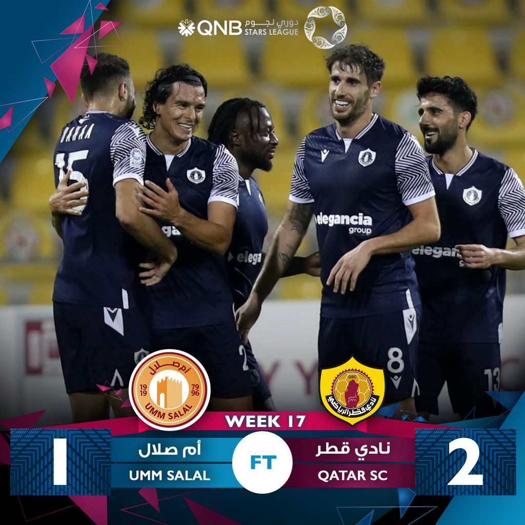 ورفع نادي قطر رصيده الى 19 نقطة ولديه مباراة مؤجلة أمام السد، فيما توقف رصيد أم صلال عند النقطة 25 .