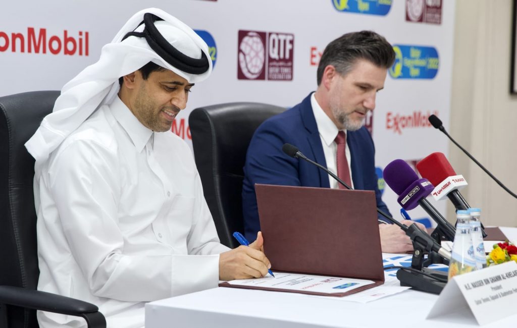 جاء ذلك خلال المؤتمر الصحفي الذي عقده السيد ناصر بن غانم الخليفي رئيس الاتحاد القطري للتنس والاسكواش والريشة الطائرة والسيد دومنيك جينيتي رئيس ومدير عام شركة إكسون موبيل قطر.