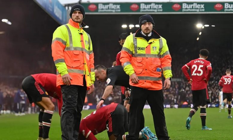 كشفت الشرطة يوم الاثنين أنها اعتقلت تسعة مشجعين بعد فوز مانشستر يونايتد 4-2 على ليدز يونايتد في الدوري الإنجليزي الممتاز لكرة القدم يوم الأحد في مباراة ألقت خلالها جماهير على ما يبدو شيئا على لاعب من مانشستر يونايتد.