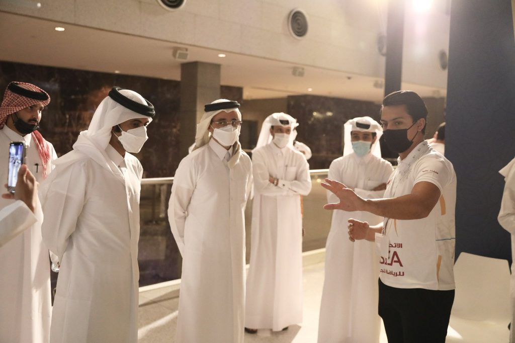 شارك سعادة صلاح بن غانم العلي وزير الرياضة والشباب في برنامج “وزنك الصح” خلال زيارته يوم السبت لجناح معرض الاتحاد القطري للرياضة للجميع، ضمن فعاليات حفل “نجاح قطري” النسخة الخامسة ، بمركز قطر الوطني للمؤتمرات ، وأجرى سعادته إختبارا مبسطا للياقة البدنية ، تحت إشراف قسم التربية البدنية بكلية التربية بجامعة قطر، إضافة إلى إجراء بعض القياسات الحيوية ، والاستماع الى استشارة صحية من طرف اخصائي التغذية من مؤسسة الرعاية الصحية الأولية ، وتفقد سعادة وزير الرياضة والشباب ، محتويات المعرض الذي يبرز أنشطة اتحاد الرياضة للجميع ،من خلال روزنامة 2022 الطموحة والتي تشتمل على 575 فعالية رياضية ،وحظي برنامج ” وزنك الصح ” الذي أطلقه الاتحاد القطري للرياضة للجميع بالتزامن مع مشاركته في حفل نجاح قطري باهتمام كبير من الزوار لما يقدمه من نصائح صحية مهمة .