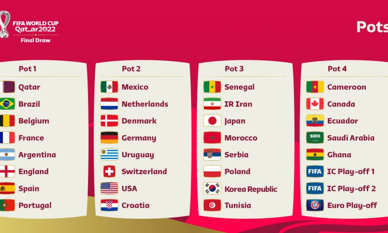 وإذا كانت منتخبات فرنسا حاملة اللقب والبرازيل حاملة الرقم القياسي في عدد الالقاب (5) والارجنتين وإنكلترا وبلجيكا وإسبانيا والبرتغال بالاضافة الى قطر بصفتها الدولة المضيفة، ستتواجد في المستوى الاول، فإن ألمانيا بطلة العالم 4 مرات وهولندا التي بلغت المباراة النهائية ثلاث مرات وكرواتيا وصيفة النسخة الاخيرة في روسيا 2018، جاءت في المستوى الثاني، ما ينبئ بإمكانية حدوث “مجموعة موت” على سبيل المثال واحدة مؤلفة من البرازيل وهولندا وبولندا والكاميرون.