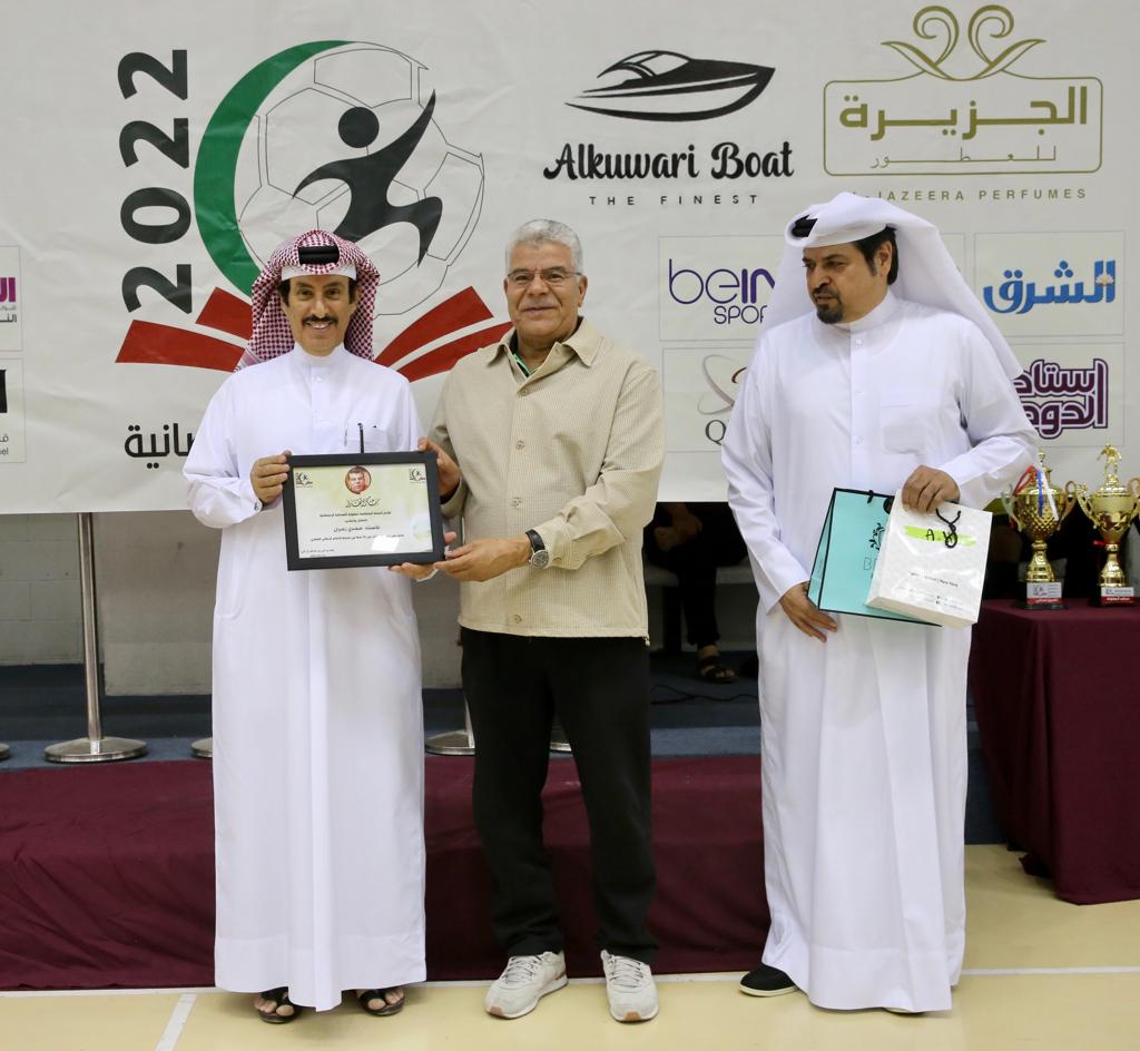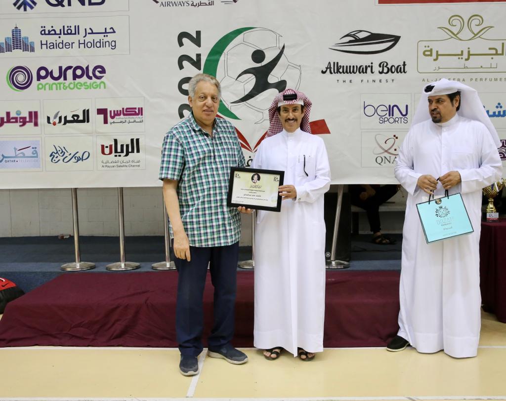 الدوحة : رؤيةسبورت– قام سعادة الأستاذ سعد محمد الرميحى رئيس المركز القطري للصحافة برعاية حفل تكريم وتوزيع الكؤوس والميداليات على الفرق الثلاثة الأولى فى النسخة العاشرة من البطولة العاشرة الرمضانية للإعلاميين بالدوحة التى يترأسها الزميل الأستاذ على حسين ونخبة من الزملاء والتي فاز فريق جريدة الشرق بنسختها العاشرة للمرة الثانية على التوالي فيما احرز فريق قناة الريان المركز الثاني وفريق وكالة الانباء القطرية المركز الثالث، وفي بادرة من اللجنة المنظمة لبطولة الصحافة وبمناسبة إقامة النسخة العاشرة تم تكريم عدد من رواد الاعلام الرياضي ممن امضوا اكثر من 35 سنة في خدمة الرياضة القطرية من قدامى الصحفيين فى الدوحة وهم الاساتذة فايز عبد الهادى ومجدى زهران ومحمد عاصم وسامى صادق وصلاح عبد الغنى وعامر التيتاوى حيث قدم سعادة الإعلامي الكبير سعد الرميحي الذى ترأس من قبل تحرير صحيفتى الشرق والراية ومجلات الصقر وقوس قزح كما ترأس المراكز الإعلامية الدولية الكبرى ولجان الإعلام الرياضية والشبابية وكان أيضا مديرا لتلفزيون قطر الهدايا والشهادات التكريمية لهذه الكوكبة من الزملاء الذين اثنوا على مبادرة بطولة الصحافة على تشريف سعادة رئيس المركز القطري للصحافة وتكريمهم امام الزملاء الإعلاميين والفرق المشاركة في البطولة وطالبوا ان تكون هذه المبادرة بشكل سنوي حتى يتم تكريم جميع قدامى الإعلاميين .