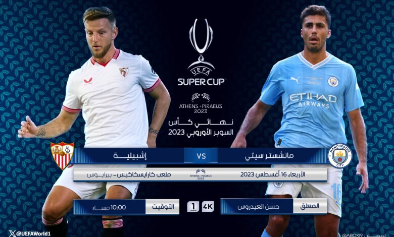 ويبحث مانشستر سيتي عن اللقب الأول له في السوبر الأوروبي، فيما توج أشبيلية بلقب السوبر مرة واحدة عام 2006.