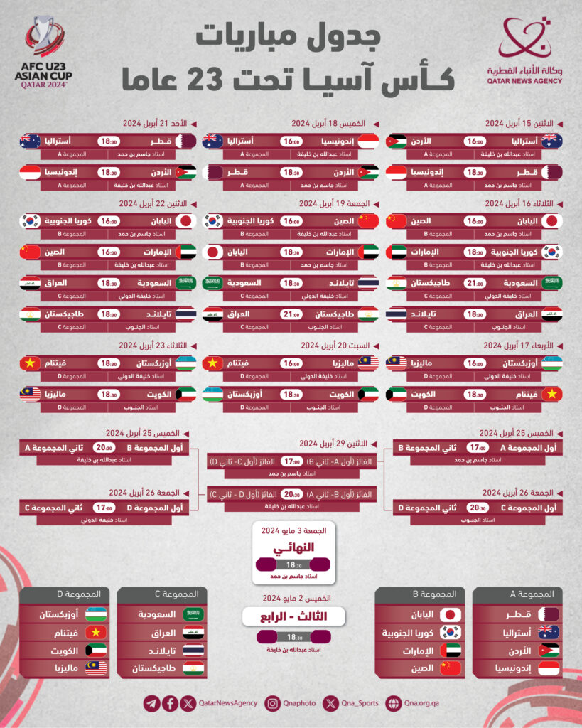 وأضاف المدرب: “المنتخب القطري بات جاهزا لخوض البطولة بعدما دخل برنامجا تحضيريا مطولا بدأ منذ شهر أغسطس الماضي، وفر خلاله الاتحاد القطري كل مستلزمات النجاح، حيث خاض المنتخب عددا من المحطات التنافسية والمباريات الودية مع الكثير من المنتخبات القوية، ووصل إلى حالة فنية وبدنية مثالية لاستهلال مشوار المنافسة التي سنتعامل مع مبارياتها كل واحدة على حدة بدءا من اللقاء الافتتاحي أمام المنتخب الإندونيسي، الذي يعد نقطة الانطلاق نحو مشوار ندرك أنه لن يكون سهلا في ظل سعينا لتحقيق هدفنا المنشود بالتأهل إلى الأولمبياد.