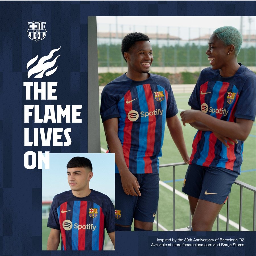 وأكد برشلونة أن القميص الجديد مستوحى من الذكرى 30 لفريق عام 1992، وسيكون متاحا في المتاجر الرسمية وعلى الموقع الإلكتروني.