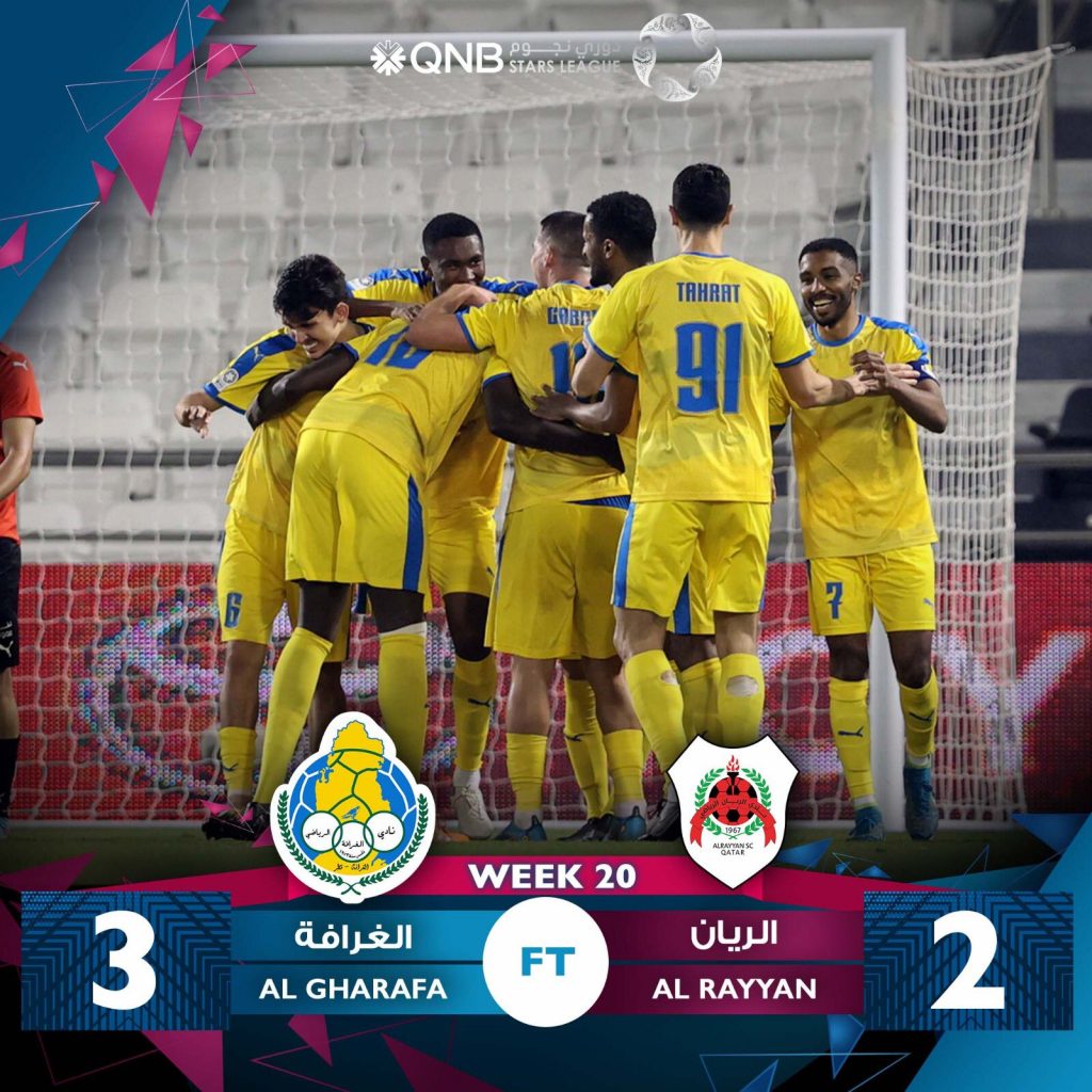 حقق الغرافة فوزاً مثيراً على حساب الريان بنتيجة 3-2، في المباراة التي جمعت الفريقين على استاد جاسم بن حمد بنادي السد ضمن منافسات الجولة ال 20 لدوري نجوم QNB للموسم الكروي 2021-2022، مساء اليوم الخميس.