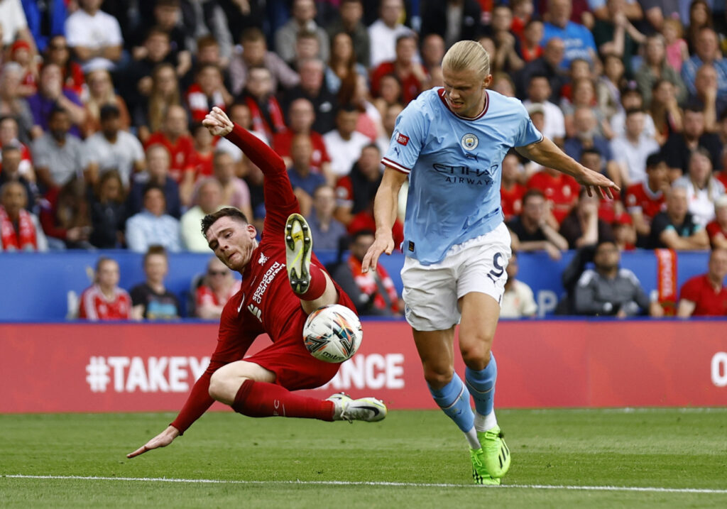 ومنح ترينت ألكسندر أرنولد التقدم لليفربول وصيف حامل اللقب بعد 21 دقيقة من البداية. لكن الوافد الجديد جوليان ألفاريز أدرك التعادل لسيتي في الدقيقة 70 بعد 12 دقيقة من مشاركته.