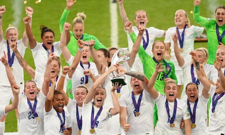 لندن : توج منتخب إنجلترا بلقب بطولة كأس الأمم الأوروبية لكرة القدم للسيدات للمرة الأولى في تاريخه، بعد فوزه على نظيره الألماني (2- 1) في الوقت الإضافي من المباراة النهائية التي جرت بينهما مساء الأحد على ملعب “ويمبلي” في العاصمة البريطانية لندن.