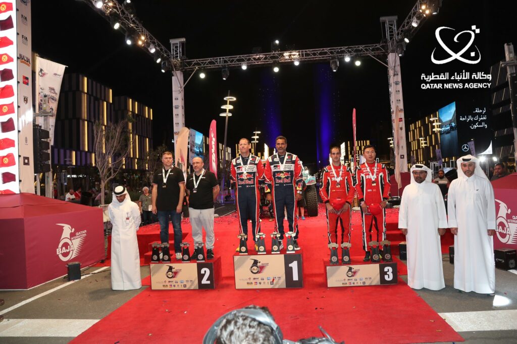 الدوحة: توج السائق القطري ناصر صالح العطية للعام الثاني تواليا بلقب باها قطر الدولي، الذي يشكل الجولة الثانية من “فيا” كأس العالم والشرق الأوسط كروس كاونتري، والجولة الثانية أيضا من كأس العالم للدراجات النارية (فيم)، والذي نظمه الاتحاد القطري للسيارات والدراجات النارية على مدار ثلاثة أيام، بمشاركة أكثر من 100 فريق يمثلون 31 دولة.