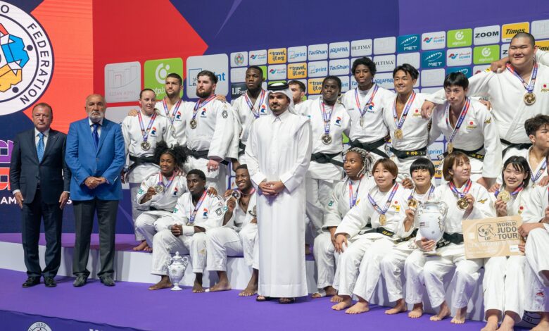 وبختام المنافسات، توج سعادة الشيخ جوعان المنتخب الياباني بكأس المركز الأول لفئة الفرق مختلط، فيما سلم رئيس الاتحاد الدولي للجودو الميداليات الذهبية لمنتخب اليابان، وقامت السيدة ليزا آلان الأمينة العامة للاتحاد الدولي للجودو بتتويج المنتخب الفرنسي بالميداليات الفضية، بينما توج رئيس الاتحاد القطري منتخب جورجيا بالميداليات البرونزية.