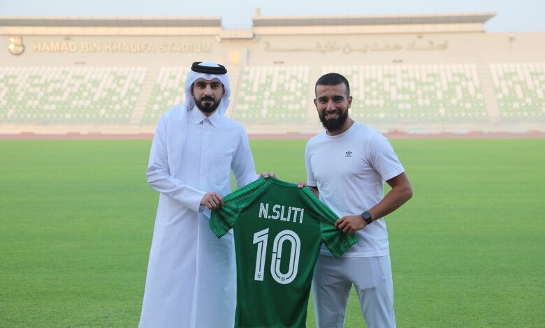 تعاقد النادي الأهلي القطري رسميا اليوم مع النجم التونسي نعيم السليتي قادما من نادي الاتفاق السعودي لمدة موسمين، ويعتبر السليتي أحد اللاعبين اللذين شاركوا مع المنتخب التونسي في معظم الاستحقاقات الإقليمية والدولية خلال السنوات الماضية.