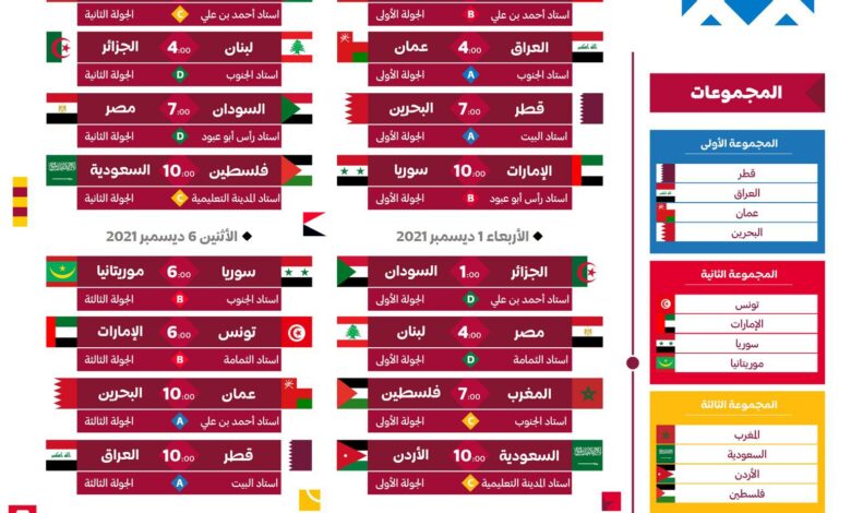 تنطلق اليوم منافسات بطولة كأس العرب العاشرة لكرة القدم والتي تقام للمرة الأولى تحت إشراف الفيفا بمشاركة ستة عشرة منتخبا عربيا وسوف يستضيف استاد البيت احد الاستادات التي أنشئت خصيصا لاستضافة مباريات كأس العالم قطر 2022 إفتتاح كأس العرب مساء اليوم