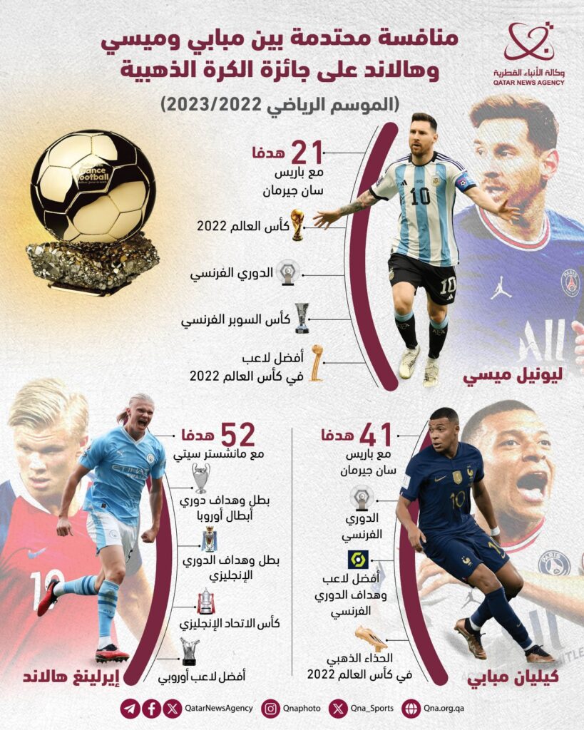 ميسي وهالاند ومبابي يتنافسون على التتويج بالكرة الذهبية 2023