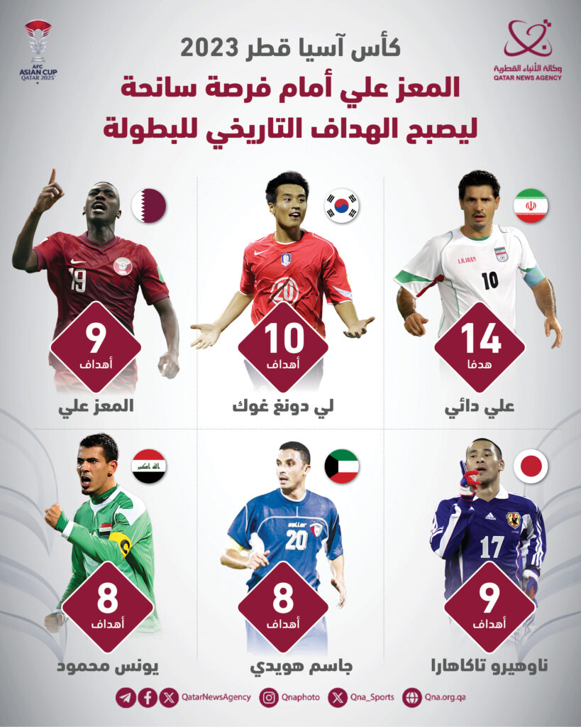 وعرفت كأس آسيا أربعة لاعبين سجلوا “سوبر هاتريك” قبل المعز علي وهم: الإيرانيان بهتاش فريبا وعلي دائي، والبحريني إسماعيل عبداللطيف، والأردني حمزة الدردور.