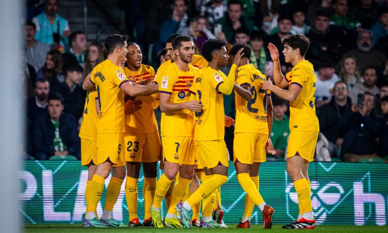 مدريد: فاز فريق برشلونة على مضيفه ريال بيتيس بنتيجة 4 / 2 اليوم، ضمن منافسات الجولة الـ21 من الدوري الإسباني لكرة القدم.