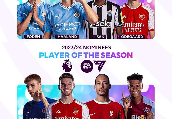 أما قائمة اللاعبين المرشحين للفوز بجائزة أفضل لاعب في الدوري للموسم الحالي، فقد ضمت 8 لاعبين هم: النرويجي هالاند (مانشستر سيتي)، الهولندي فيرجيل فان دايك (ليفربول)، كول بالمر (تشيلسي)، فيل فودين (مانشستر سيتي)، مارتين أوديجارد وديكلان رايس (أرسنال)، السويدي ألكسندر إيزاك (نيوكاسل يونايتد) وأولي واتكينز (أستون فيلا).