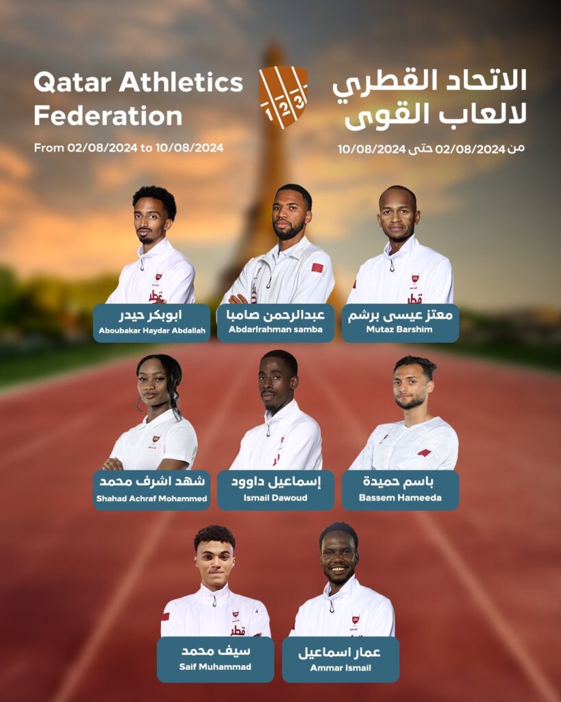 من جانبه كشف السيد محمد المسند عن مشاركة 14 رياضيا ورياضية يمثلون خمسة اتحادات هي: ألعاب القوى، والطائرة، والرماية، ورفع الأثقال، والسباحة في دورة الألعاب الأولمبية /باريس 2024/، حيث تضم قائمة المشاركين كلا من: معتز عيسى برشم وعبدالرحمن صامبا وأبوبكر حيدر وباسم حميدة وإسماعيل داوود وعمار إسماعيل وسيف محمد وشهد محمد في ألعاب القوى، وسعيد أبو شارب وراشد صالح العذبة في الرماية، وفارس إبراهيم حسونة في رفع الأثقال، وشريف يونس وأحمد تيجان في الكرة الطائرة الشاطئية، بالإضافة إلى عبدالعزيز العبيدلي في السباحة.