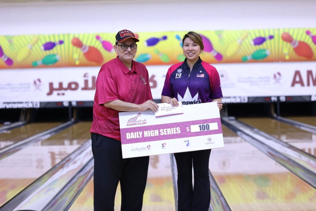 كما شهدت منافسات اليوم تتويج اللاعبة الماليزية نورة نوركام بجائزة أعلى رصيد في منافسات اليوم الأول، حيث حققت 709 نقطة وتصدرت المحاولة الثالثة أمس.