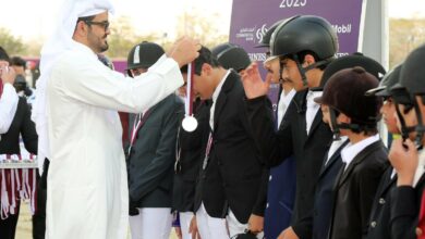 الدوحة: فاز الجواد “بلويز بوي”، ملك ناصر محمد كاظم الأنصاري وبقيادة الخيال إيفان روسي وإشراف المدرب طارق عيسى رجب عبدالله، بالمركز الأول في الشوط السابع والرئيسي لكأس وادي السيل للخيل المهجنة الأصيلة المبتدئة المتميزة عمر 3 – 6 سنوات لمسافة 1200 متر الذي نظمه نادي قطر للسباق والفروسية مساء اليوم على مضمار العقدة الرملي.