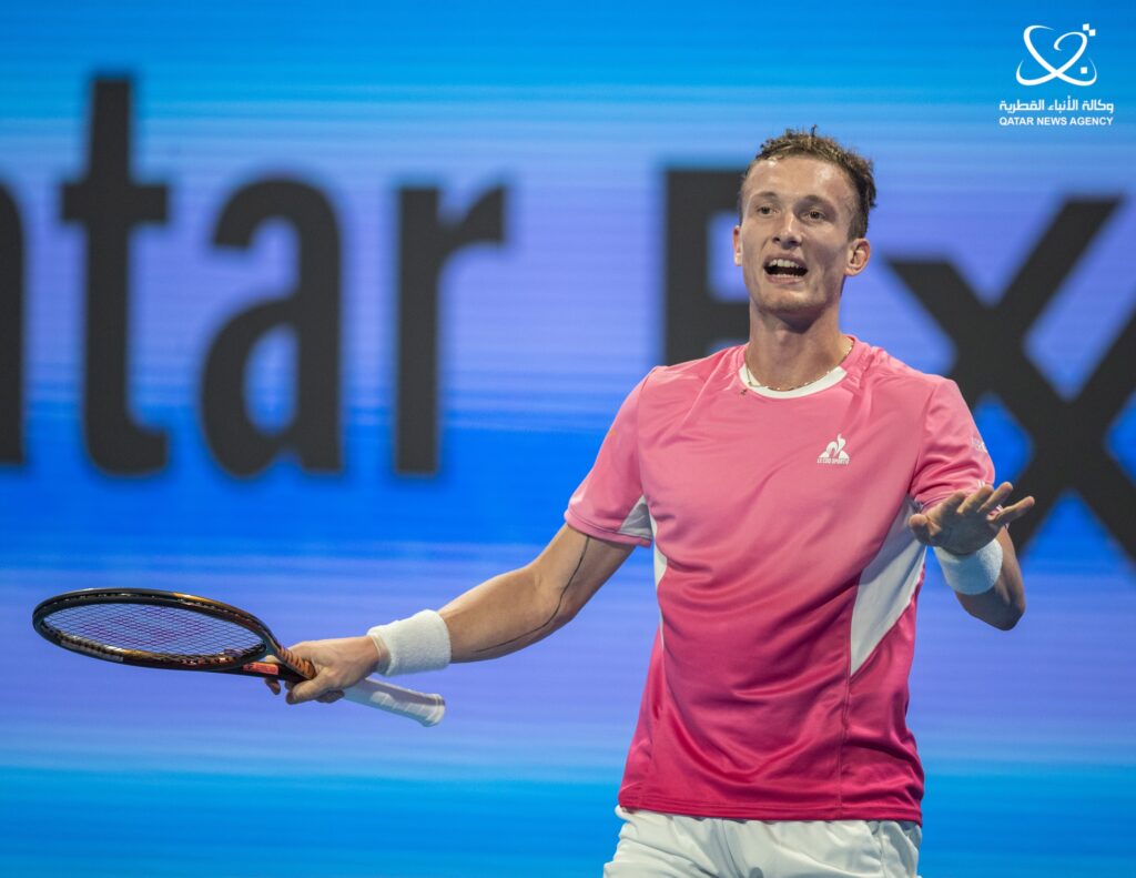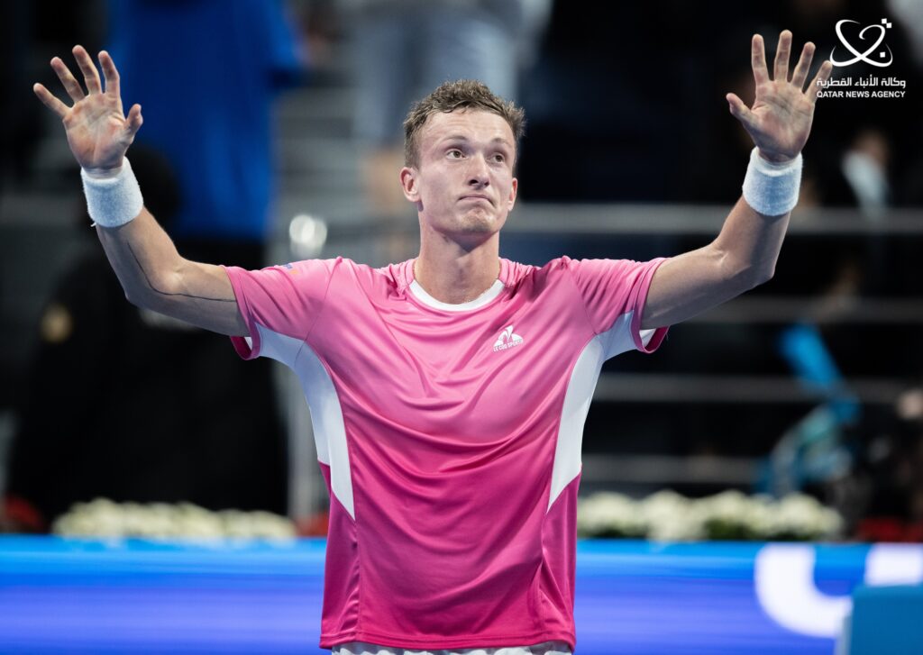 ونجح اللاعب التشيكي “23 عاما” المصنف 25 عالميا في الإطاحة بالمصنف الأول للبطولة القطرية من الدور ربع النهائي وتغلب عليه بواقع 6 ـ 3 و3 ـ 6 و6 ـ 4 في مباراة استمرت ساعتين وعشر دقائق.