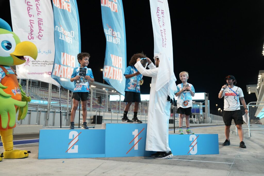 وعقب ختام المنافسات التي إستمرت حتى الساعة الثانية عشر مساءاً بوصول آخر متسابق، قام السيد عبد الله الدوسري رئيس الأنشطة والفعاليات بالإتحاد القطري للرياضة للجميع، بتكريم الفائزين بالمراكزالثلاثة الأولى، من كل فئة بالميداليات الملونة والجوائز، كما تم توزيع العاب وهدايا على الأطفال، وقد تشكل السباق من اربعة مسافات، هي 1كم للصغار، والكبار، 5 كم، 10كم 21و كم، إضافة إلى سباق 750 متر، للأطفال من سن 3 الى 6 سنوات، وأسفرت المنافسات في سباق 1 كم للرجال في الفئة المتوسطة عن فوزعلي المهندي بالمركزالأول، ، بينما جاء ميكا أوزي ،في صدارة المبتدئين، وحل شادي أبو ذكي في مقدمة فئة الناشئين.