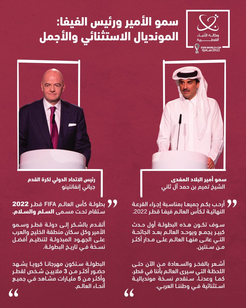كلمة حضرة صاحب السمو الشيخ تميم بن حمد آل ثاني أمير البلاد المفدى خلال حفل قرعة كأس العالم فيفا قطر 2022.