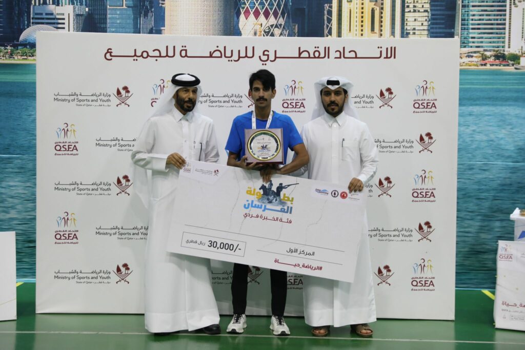 توج الفائزون بالمراكز الثلاثة الأولى في بطولة الفرسان 2023، التي ينظمها الاتحاد القطري للرياضة للجميع تحت مظلة وزارة الرياضة والشباب، بمجموع جوائز مالية بلغت 173 ألف ريال، وتضمنت منافسات في السباحة وركوب الخيل والرماية.
